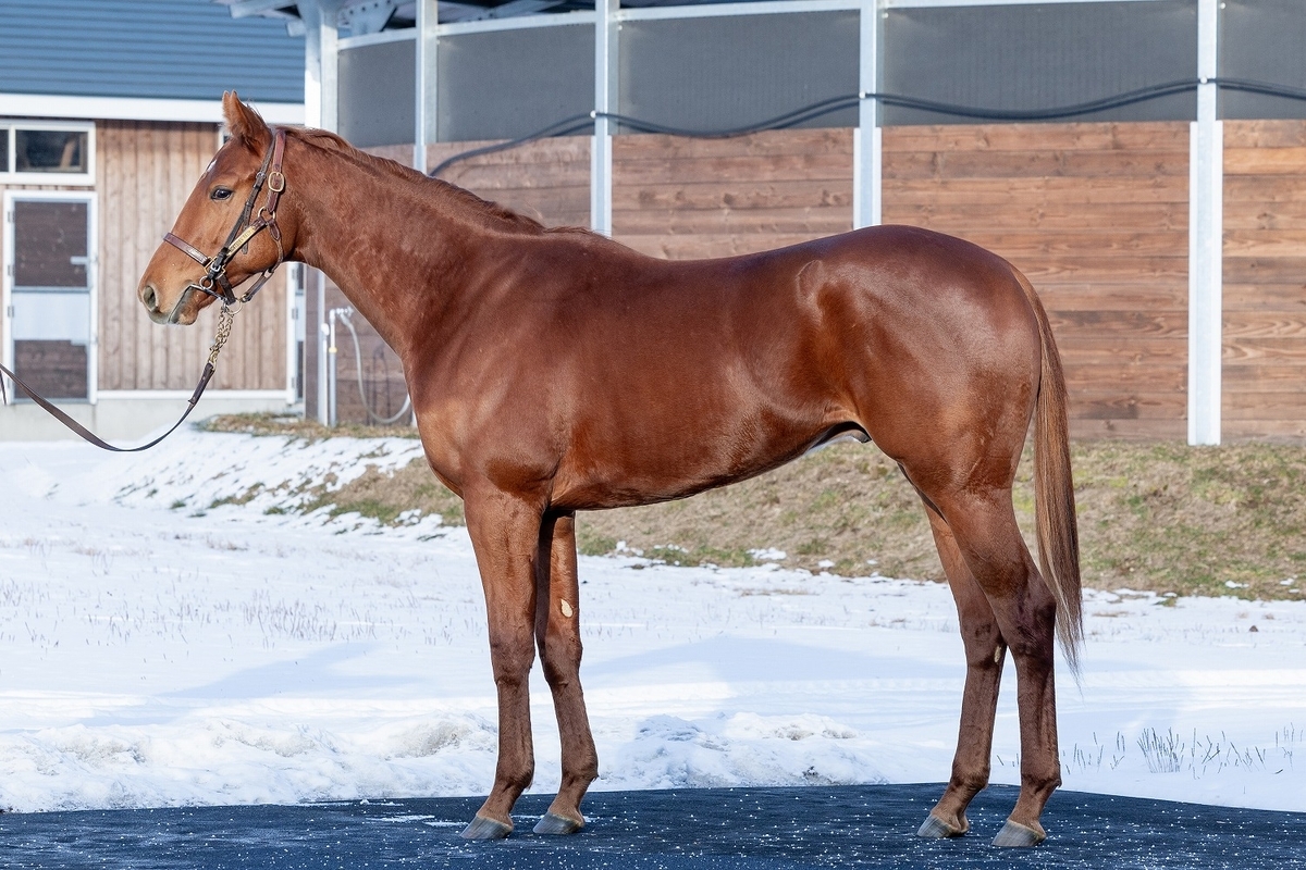 ・当地スタッフ 「ハロン15秒のラップを刻んだ際に楽々で、しっかり身体も使えています。非常にパワフルな走りを披露しており、ダート適性が非常に高そう。と言っても、芝でも能力を発揮できそうなタイプに映り、様々なシーンでの活躍を夢見たくなる存在です」